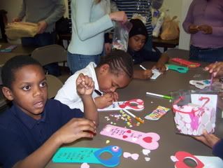 Heute hat Rachel mich und Sarah (is n freshmen ...das bedeutet 9. Klasse... und geht auf meine Schule sowie zu meiner Kirche) direkt von der Schule abgeholt und wir sind zur Kirche gebraust. Von dort aus zu Woodside Gardens (ein der armen "Ghettoviertel" hier in Annapolis... neben Robinwood usw.), wo wir einigen der Kindern dort in so einer Art "Hort" bei den Hausaufgaben geholfen und dann so ne Art Valentinstagsparty gemacht haben.